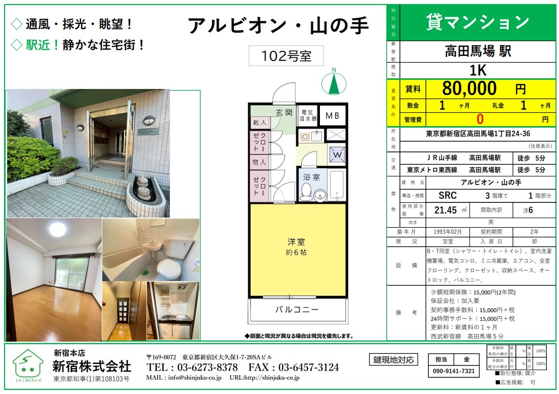交通 JR山手線 高田馬場駅 徒歩 5分 東京メトロ東西線 高田馬場駅 徒歩 5分